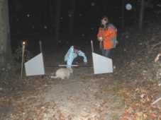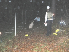 liegen bleiben, während die Hundeführer mit einer Tannenzapfenschleuder "Zapfen"