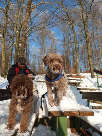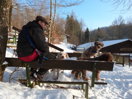 einer Bank, die Hütte war geschlossen. Die Perros bekamen Fingerfood :o)