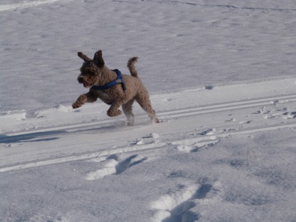 Pulverschnee, Sonnenschein, blauer