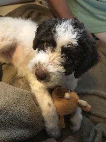macht alles prima mit! Er ist anhänglich, lustig und auch er lernt sehr gut!"