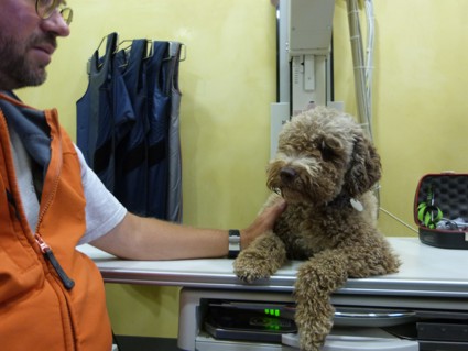 aber nicht. Ein Rassehund im Wartezimmer der Tierarztpraxis, gerade mal 4 Jahre alt und auf beiden Augen